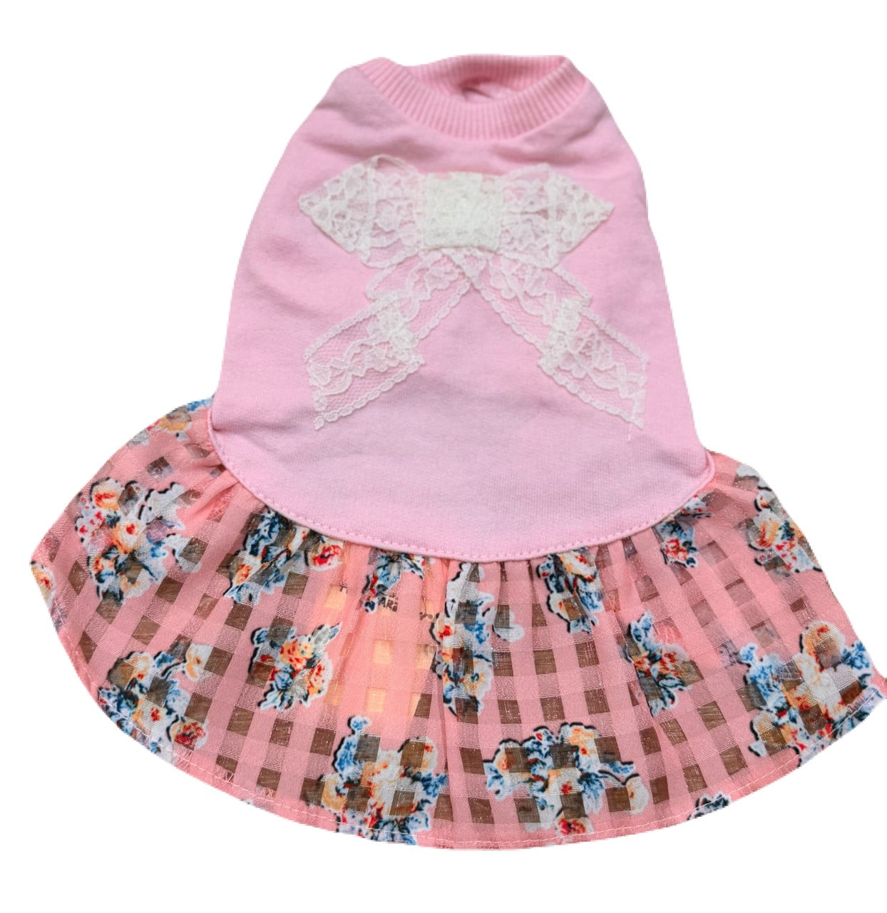 スカート部分は少し透ける花柄のギンガムチェックデザインで可愛いウェアーです☆